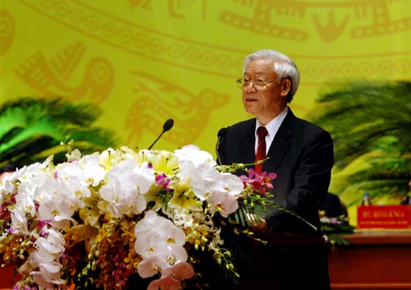 | 越共中央总书记阮富仲在大会上发表讲话。图片来源:越南共产党电子报 |