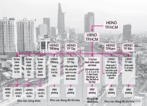 胡志明市的实际情况表明,依照现行法律组建的由人民议会和人民委员会组成的政权未能在城市和农村的国家行政管理上明确区分。