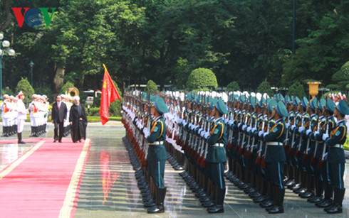 (VOVworld) - 应越南国家主席陈大光邀请,伊朗总统鲁哈尼于10月5日和6日对越南进行国事访问。此行旨在推动越伊两个传统伙伴的友好合作关系,加强越伊在新背景下的合作关系,翻开两国传统友好和多领域合作关系的新篇章。