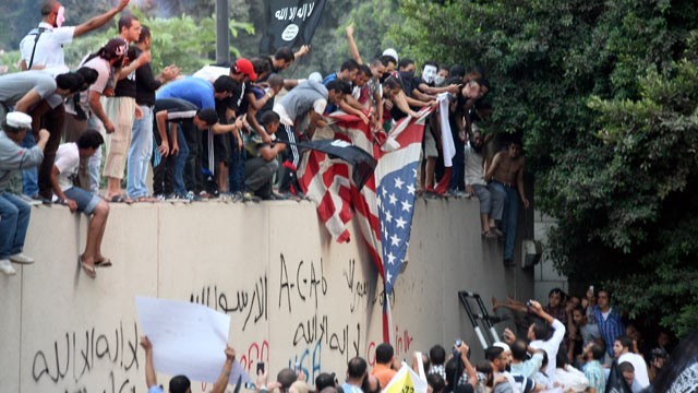 影片“审判穆罕默德的法庭”全长十三分钟,预计九月十一日在美国纪念九一一事件十一周年之际播放。但该片遭到全球穆斯林的强烈抗议。约两千名埃及人聚集在美国驻埃及大使馆门前。示威者爬上大使馆围墙,降下美国国旗,将其撕毁,并升起一面黑色旗帜。领导这次抗议活动的埃及撒拉菲努尔党领袖说,该党已向美国大使馆递交抗议信,要求美国政府禁放这部影片,并作出正式道歉。埃及政府呼吁人民保持克制,但穆兄会则号召进行全民抗议。与此同时,利比亚也上演了暴力冲突。上千人包围、打砸美国驻利比亚东部最大城市班加西的领事馆,武装人员向领事馆发射火箭弹和投掷炸弹,美驻利大使克里斯·史蒂文斯和3名外交人员在交火中丧生。为缓和紧张局势,美国驻各国大使馆谴责少数美国人蓄意侮辱穆斯林的宗教信仰。美国总统奥巴马12日发表声明,对美国驻利比亚班加西领事馆遭袭事件予以“强烈谴责”,同时命令美国驻世界各地外交机构加强安全防范措施。欧盟与北约呼吁利比亚迅速展开调查,同时保障各国外交人员的生命安全。利比亚国民议会主席马贾里亚夫12日召开记者会,向美国人民表达歉意,向美国政府以及美国大使家属表示慰问。
