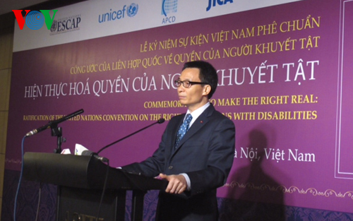 (VOVworld) - 越南国会日前通过关于批准联合国《残疾人权利公约》的决议。这肯定了越南向国际社会做出的关于保障人权的强有力政治承诺,是在越南实施残疾人权利的具体表现。