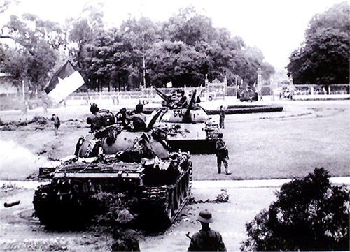 在全国许多地方取得胜利后,1975年4月底,越南人民军以磅礴气势进军并解放西贡。1975年4月30日11时30分,抗战旗帜在独立营上空飘扬。这场战略决战为越南民族持续二十一年的抗美救国战争画上了句号。