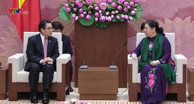 | 越南国会副主席丛氏放会见老越友协主席维莱翁 |