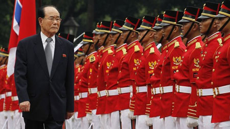 (VOVworld)-应越南国家主席张晋创邀请,朝鲜最高人民会议常任委员会委员长金永南本月五日至七日对越南进行正式友好访问。正式欢迎仪式六日在河内隆重举行。金永南此次越南之行旨在推动越朝多领域传统友好合作关系发展。