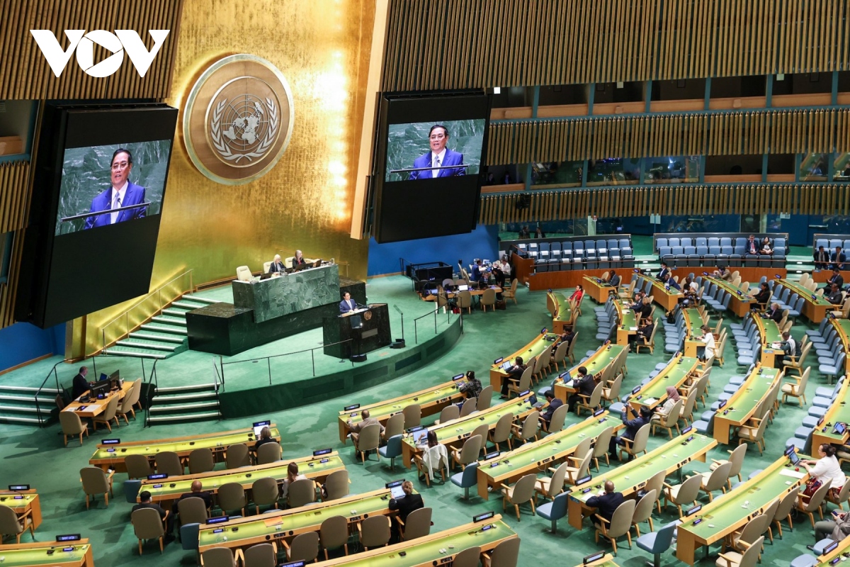 越南政府总理范明政在联合国大会会议上发表演讲。