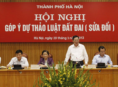 资源环境部部长阮明光说:“准备工作正抓紧进行。截止目前,职能机关已向国会代表散发了5项议定草案,其中有一项关于土地价格。虽然这些文件还需要时间加以修改,但半年内一定能完成,和它们一起颁布的还有各部和跨部门通知。”