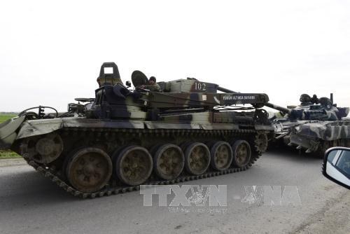 | 阿塞拜疆军队在与纳卡地区接壤的边境地区部署坦克 |
