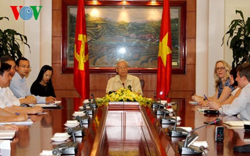关于越南经济挑战及越南加入“跨太平洋伙伴关系协定”等问题,阮富仲强调,该协定规模巨大,吸引地区乃至世界许多主要经济体参与。越南已经认真做好准备,因此充满信心并完全能够成功参加这一进程。实际上,越南正同美国和其它伙伴努力尽早结束该协定谈判。