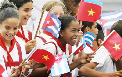 半个世纪以来,两国在民族解放斗争中一向并肩前进。在越南民族解放斗争最困难的时期,古巴党、国家和人民与越南并肩同行并在精神和物质上给予了有效的宝贵支持。在古巴遭受美国严厉的贸易禁运、连绵自然灾害、面对重重困难的岁月,越南党、国家和人民给予了兄弟的古巴全力支持。