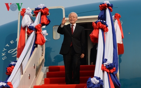 (VOVWORLD) - 应老挝人民革命党总书记国家主席本扬·沃拉吉和柬埔寨国王西哈莫尼的邀请,越共中央总书记、国家主席阮富仲正对老挝进行正式友好访问并将对柬埔寨进行国事访问。阮富仲此行有助于巩固双方政治互信,推动越南与这两个亲密邻国的全面合作。