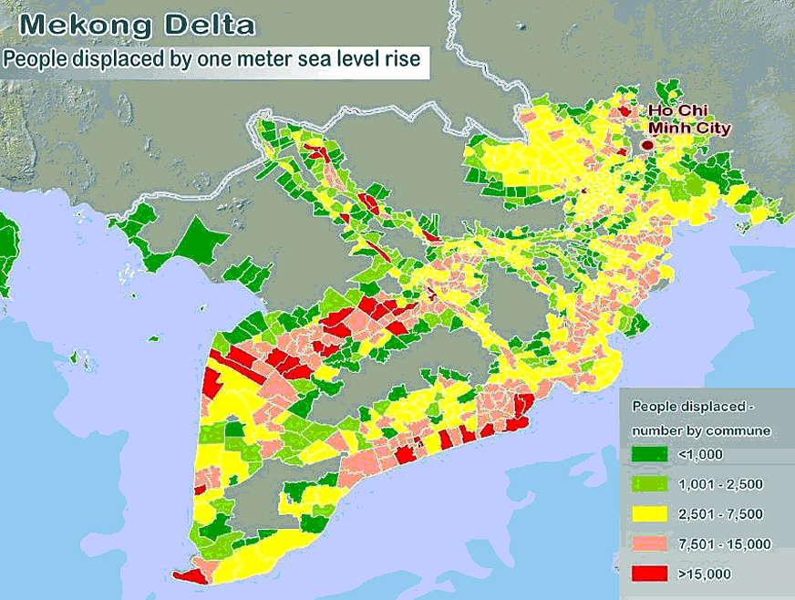 根据目前温室气体排放的速度,到2100年,地球温度可能上升3到5摄氏度,导致冰山融化、海平面上升,预计上升幅度高达60公分,地球多地发生极端气候现象将更加频繁等严重后果。预计,越南在受气候变化影响最严重的10个国家当中排名第三位。越南已经主动应对气候变化,这不仅体现在就应对气候变化问题向国际社会作出的承诺,还体现在积极实施气候变化国家战略上。