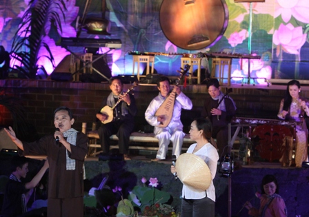 不仅是娱乐活动,才子弹唱还是一种向游客介绍九龙江地区风貌的独特艺术。海阳省游客阮秋香说:“我们到坚江省不仅观看美景还有机会欣赏民间艺人表演的才子弹唱。这真是别有一番情趣。”