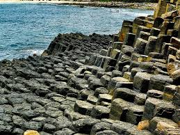 出现在我们眼前的是一大片延伸入海的大石柱,彷佛人工雕琢一般,层层叠叠码放整齐。看见石柱林,所有的疲劳似乎都消失了,身心无比轻松。石柱顶端均为六角形。边长六十至八十厘米,成千上万根排在一起,就像一个巨大的蜂窝。