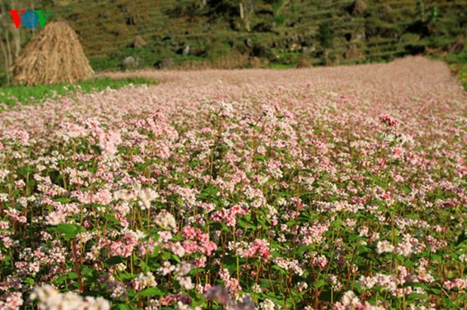 荞麦花于十月和十一月盛开。此时到河江省只见盎然盎然屹立的岩石高原被漫山遍野的荞麦花田所妆点,更增添了这里的浪漫情调,让游客流连忘返。