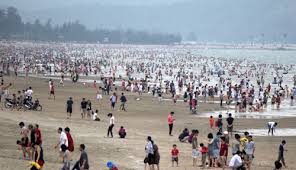 从4月30日至5月2日,炉门海滩每天接待15万至16万人次游客。除了国内游客外,还有很多国际游客,如老挝、泰国等。