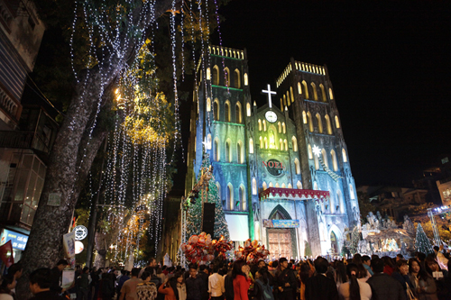 阮霞说: “这么多年了大教堂仍保持原样,只有长满苔藓的旧墙被重新粉刷,地板也是新铺的。不久前,大教堂的圣所做了修葺,祭台也重新修了,十分气派、宽敞。大教堂是河内最大的主教座堂。圣诞节期间,教堂装饰得很美。今年,圣诞树亮闪闪的。来这里游览的国际游客也停步拍照。”