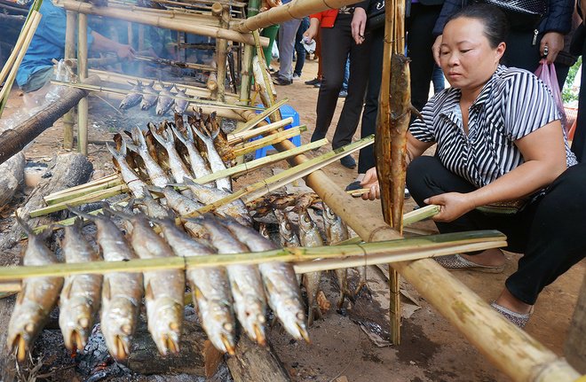 到太平省,游客还有机会品尝烤鱼肉。烤鱼是全国各地都有的一种菜肴,但太平省的制作方法则体现了水稻之乡农民的勤劳、细心和认真。烤鱼主要用两公斤以上的青鱼或草鱼。去鳞后切块,再去骨,只用鱼肉。将鱼肉、鱼露、鲜姜黄泡在一起。用长五十厘米、涂有鲜姜黄汁的竹片夹住鱼肉放在火上烤,涂鲜姜黄汁意在防止竹片被烤焦。烤鱼时不能用电扇而只用纸扇。烤一次要花四至五小时。