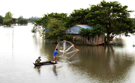 洪水季期间,到处都能看到人们放网排钓。因为,洪水也带来了多种物产,带来了一个谋生的季节。最受人们期待的物产是单吻鱼和田菁花。随洪水而来的单吻鱼多集中在红御、同塔等地。