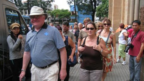 (VOVworld)-顺化故都遗迹保护中心主任潘清海表示,新年第一天,承天顺化旅游部门在富牌国际航空港为新年第一批20名游客举行了欢迎和献花仪式。