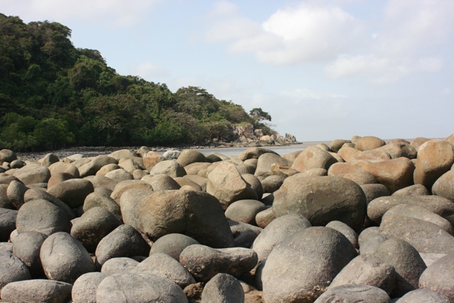 除了美丽的沙滩,薯岛还有一片石滩,散落着一块块圆如鹅卵的石头。要登上岛上的山顶,游客必须走过两条泥路,爬上山腰,穿过满是野花、古木、鸟鸣的原始森林。
