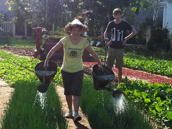 刚参加当一天农民活动的外国游客贝特说:“我觉得肩膀很沉,但心里感到很高兴,这是非常绝妙的体验。我想我要多锻炼。我参加旅游线路到这里参观。这个新体验很有趣。这是我首次到越南和会安旅游。我认为,你们的国家很美。”
