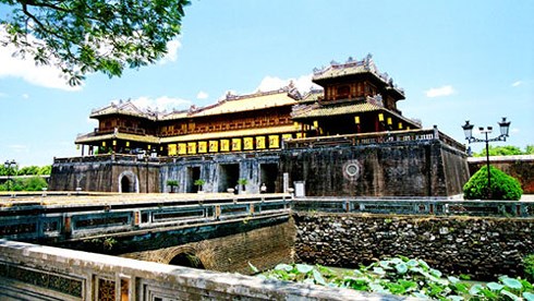 皇城以方形城墙围住,每面墙长600米,共设四道门,最独特的出入口并被视为古都象征的是午门。这是阮朝最高的行政中枢。从香江岸边经过三座城的神道上有顺化京城最重要的建筑工程,如:旗台、午门、泰和殿等。神道两侧有数百个和谐分布、与植物相辉映、并在五彩缤纷的自然景观中忽隐忽现的大小建筑工程。