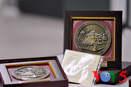 (VOVworld)- 9月7日是越南之声广播电台的台庆日。从去年起,按照惯例,每年这个时候我们都会向忠实听众赠送特别收听证明卡和礼品。今年,荣获10年、5年、3年特别收听证明卡的听众还将分别获赠铜鼓模型、还剑湖龟塔浮雕和河内独柱寺浮雕等礼品。
