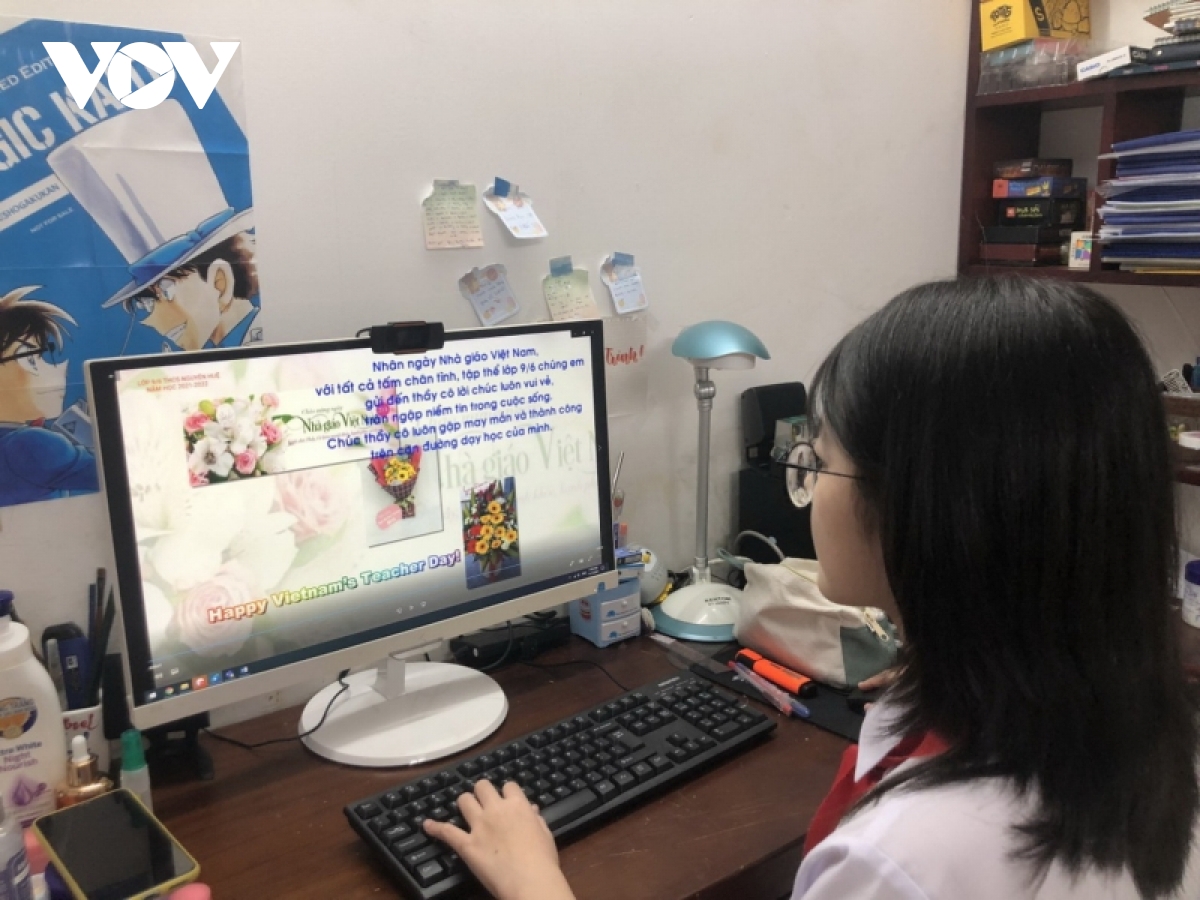 去年这个时候,虽然新冠肺炎疫情在世界各地蔓延,但越南国内由于做好防控工作,日常生活还没有遇到很大障碍。教师节期间,师生们还可以举行现场庆祝活动。学生们可以直接向老师们送花,说声谢谢。而今年四月底爆发第四波疫情以来,全国多个地方特别是大城市在新学年要采取线上教学方式。随之而来的,教师节也要采取这种间接的方式举行了。