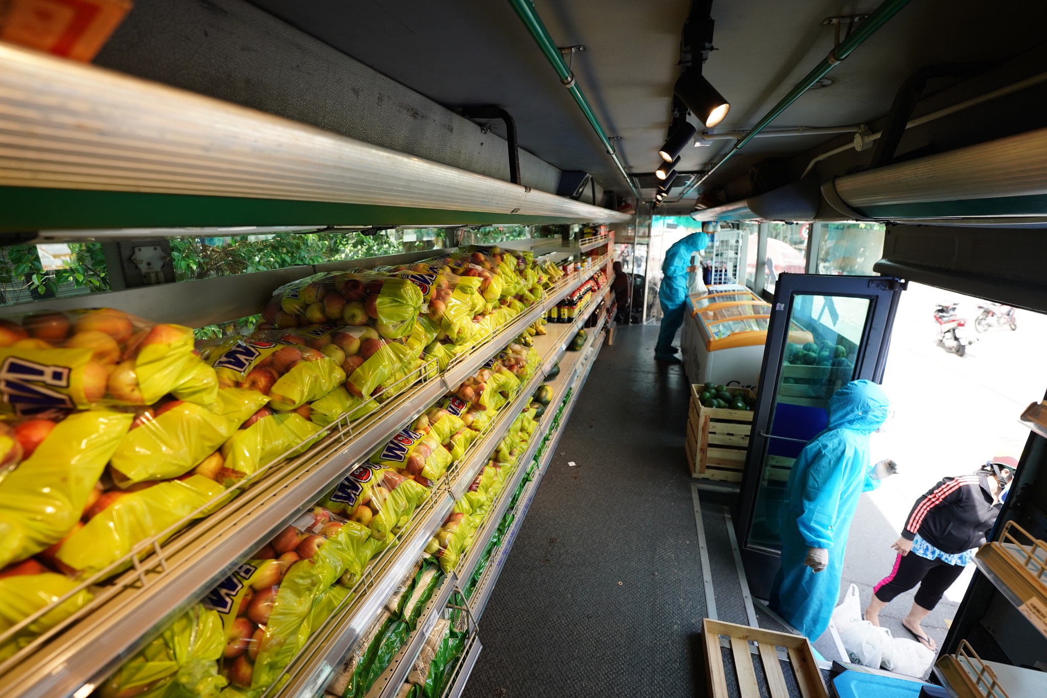实施社交距离期间,巴士等公共交通工具都停止活动。胡志明市就利用这些巴士来运输粮食食品,满足各地居民需求。8月初,胡志明市工贸局与当地一家水果连锁店(Grove Fresh)配合,把一些巴士改造成移动超市。