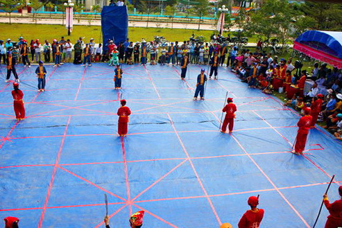 他告诉我们:“人棋中的武术得到了越南古人研究并发展成为人棋武术招式。在七种棋子中,除了不能过河的将、士、相三子,另外四种棋子都有不同的攻击和防守招式。比如说,卒打马和卒打车使用的招式一定有差别,因为马有马步、车有车招,不可能一样。这样,攻击和防守加上步伐,共有九九八十一路,特别丰富和有趣。”