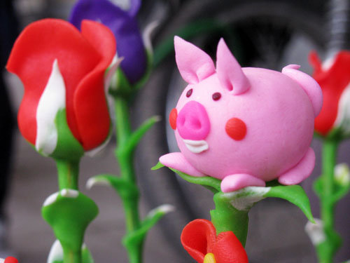 在河内市中心的梳行街摆摊的面塑艺人邓文厚说:“在12生肖中,老虎最难捏。龙是幻想出来的,因此细节虽多,做起来却比较容易。而老虎呢,首先要捏得象,然后要捏得美。老虎就要象、凶、美。平均每个动物捏3、4分钟,容易的就两分多钟,难一点的稍微久一点。价格约一万五千盾一个,也合越南人的钱包。”