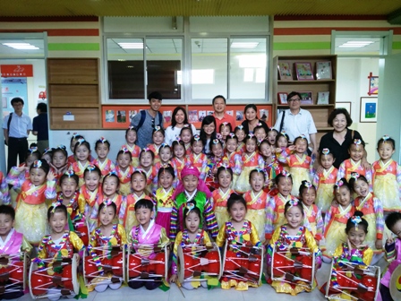 记者们与朝鲜族小朋友合影