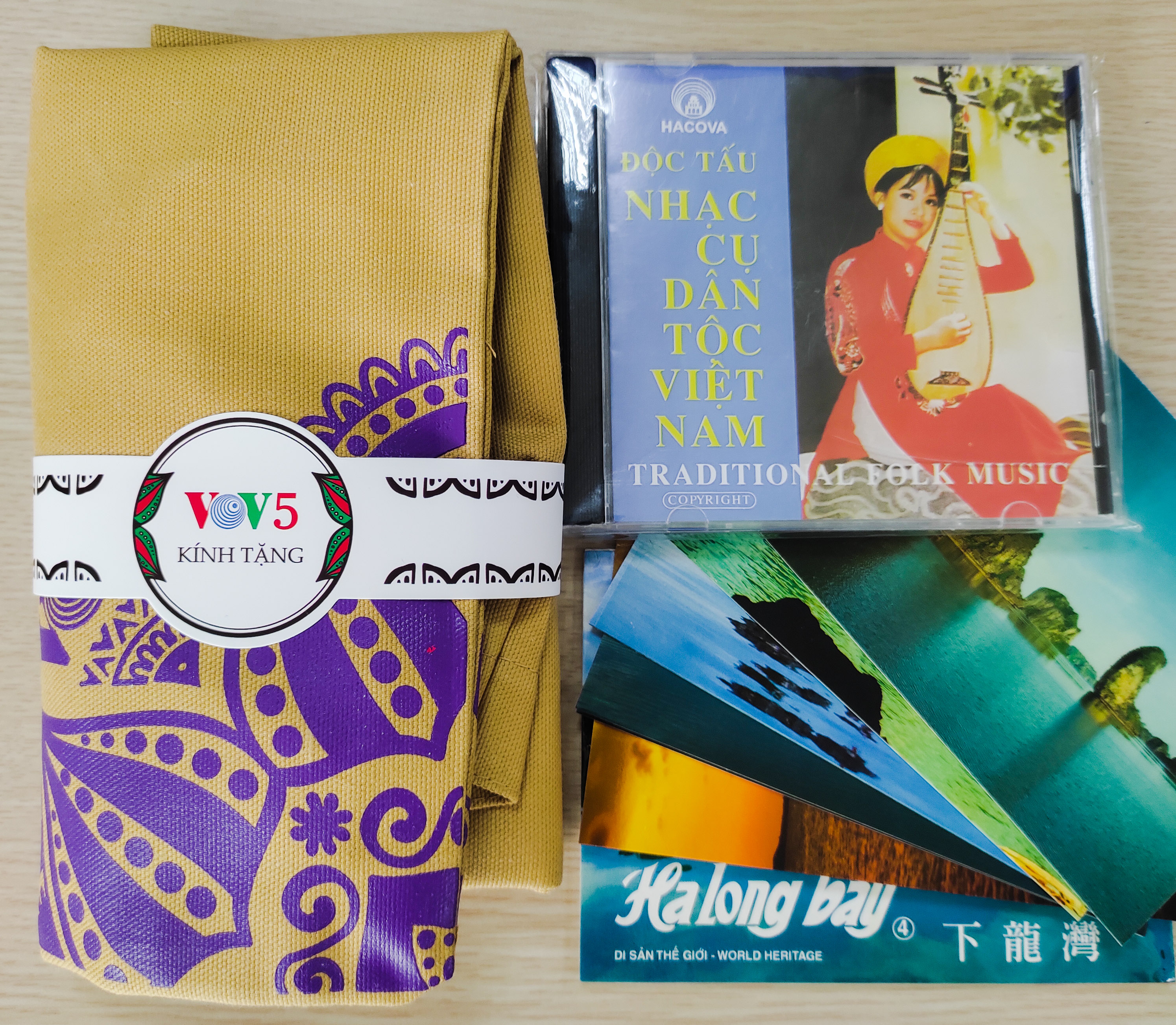 里面还有一个电台徽章和一张越南民乐CD,很喜欢,恰好我的笔记本电脑年代较老,上面还有光驱,便将CD放进去欣赏。越南民乐很好听,给人一种空灵感。”