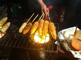 河内市龙边桥周边烤玉米摊最多。傍晚,华灯初上,大嫂们就开始摆摊了。一个炭架,一把扇子,几张矮凳,这就是全部家什。把玉米搁在炭架上烤,慢慢翻动,让玉米能整个受热,香味就一点点散发出来了。闻到扑鼻的玉米香,路过的人很少有不停下来的。