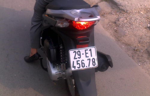 举个例子:29A-123.45这个车牌号。29是河内的序号,其实,29至33都是河内的序号。胡志明市呢,是从50至59的。A表明这是河内政府机关用车。从这儿,可以猜到,车牌是蓝色,数字是白色的。如果字母不是A或B,那么这辆车就是属于个人或民事组织的车。这时候,字母只是序列号,说明这辆车是新登记还是登记很久了。最后,为什么有的车是4个数字,有的是5个?是因为,车辆数量增多,之前用4个数字,现在增加到5个了。