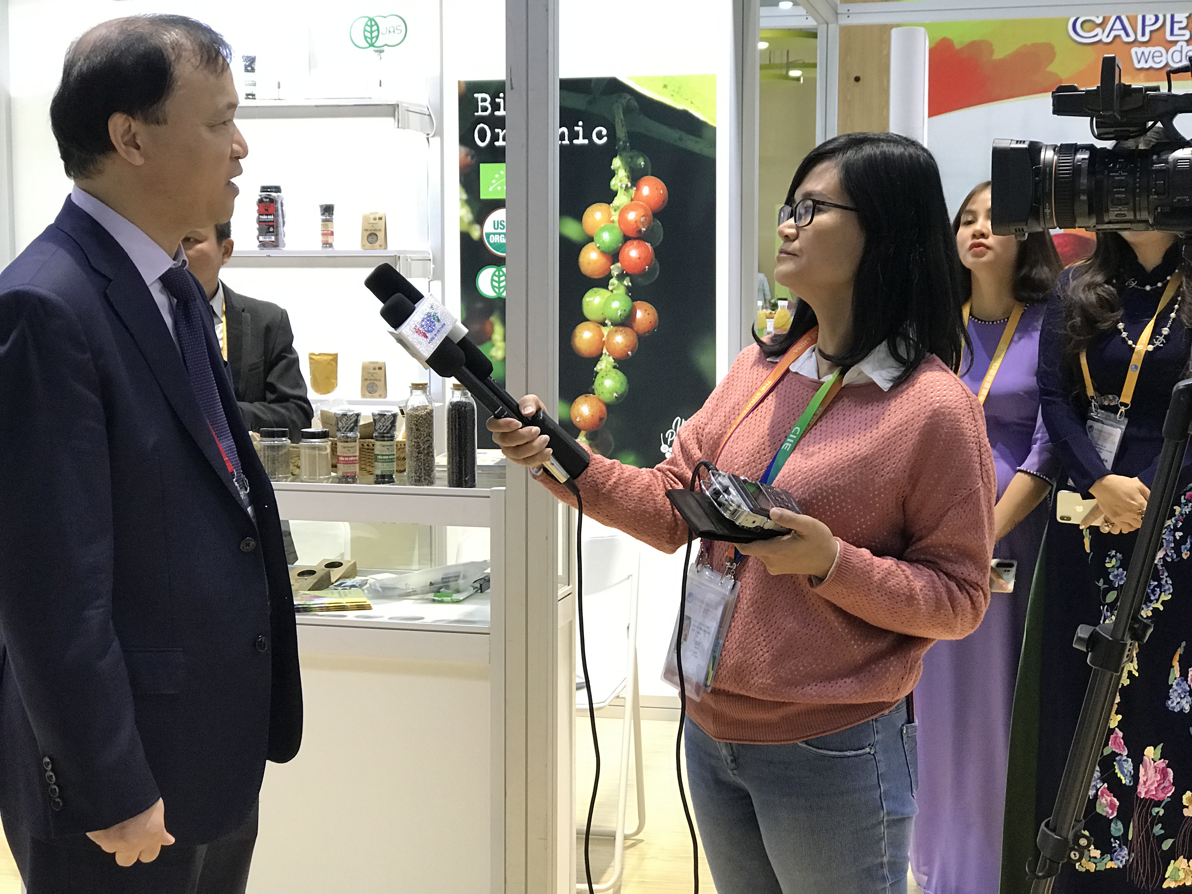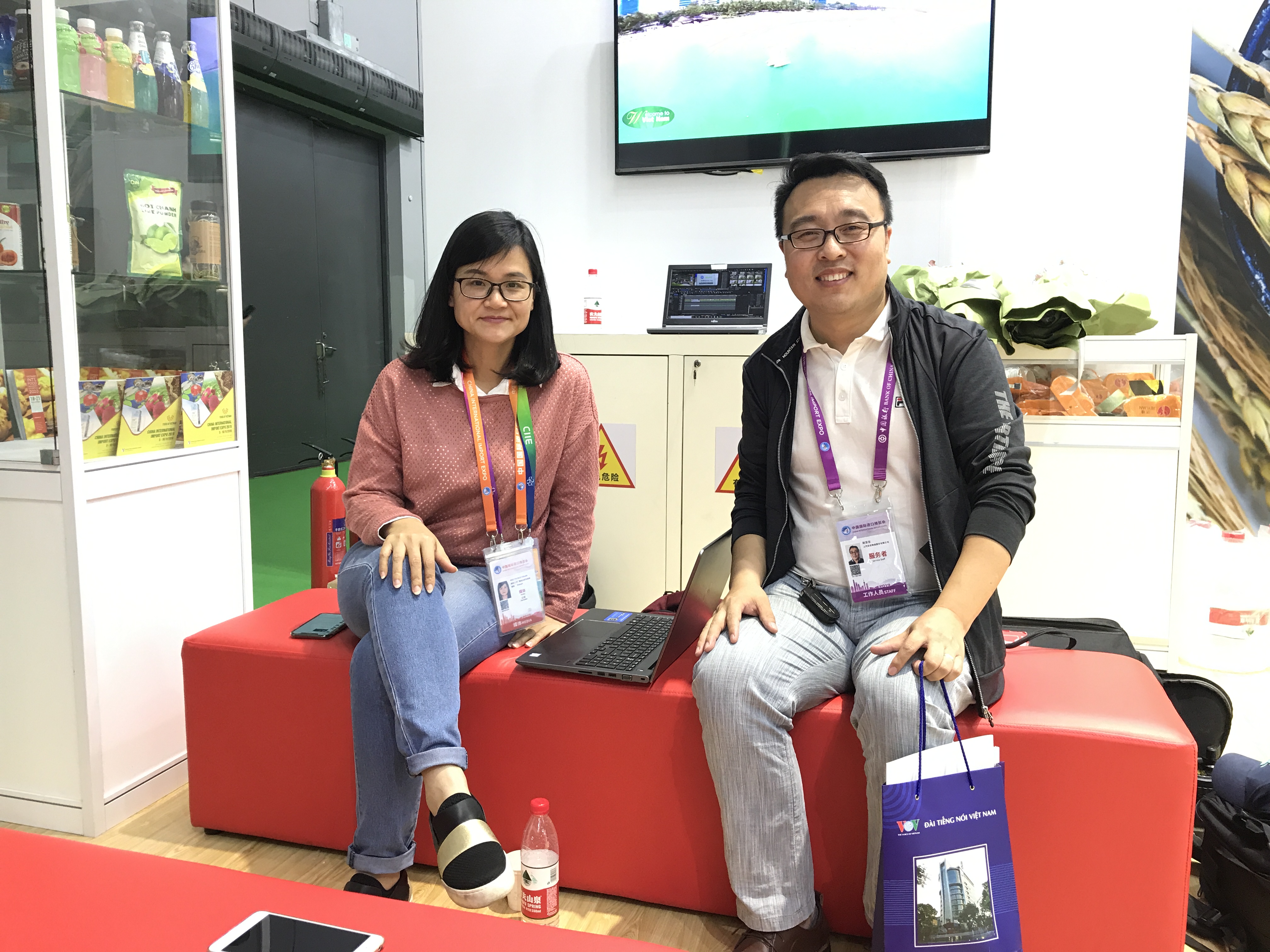 开幕那天,我下午4点来到进博会场馆,当时吴主任在食品展馆,正在忙着采访率团参加进博会的越南计划投资部部长阮志勇先生,然后又忙着向台里发照片、发录像,忙的不可开交。在工作之余、吴主任与我聊了一些话题。