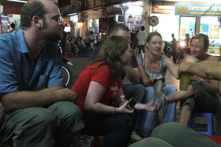 来自德国的乔纳森先生高兴地对我们说,他有老板的电话,可以随时订座。他表示,他来越南2个多星期了,除了第一周到下龙湾外,每天下午他都来这里喝啤酒。