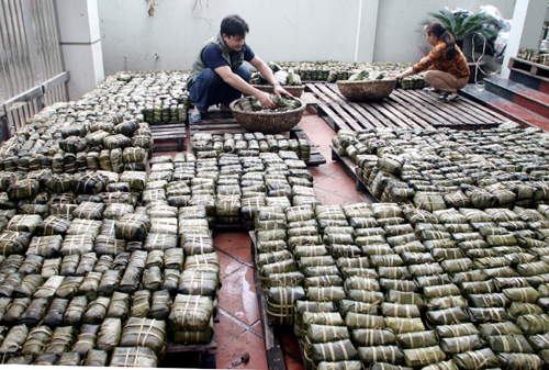 争曲村约有200多户家庭做粽子。平时,他们按订单做,销往河内几乎所有集市,以及举办婚礼和重大活动的地方。全村每天做数千个粽子。农历每月十五、三十和月初,数量增加数倍。