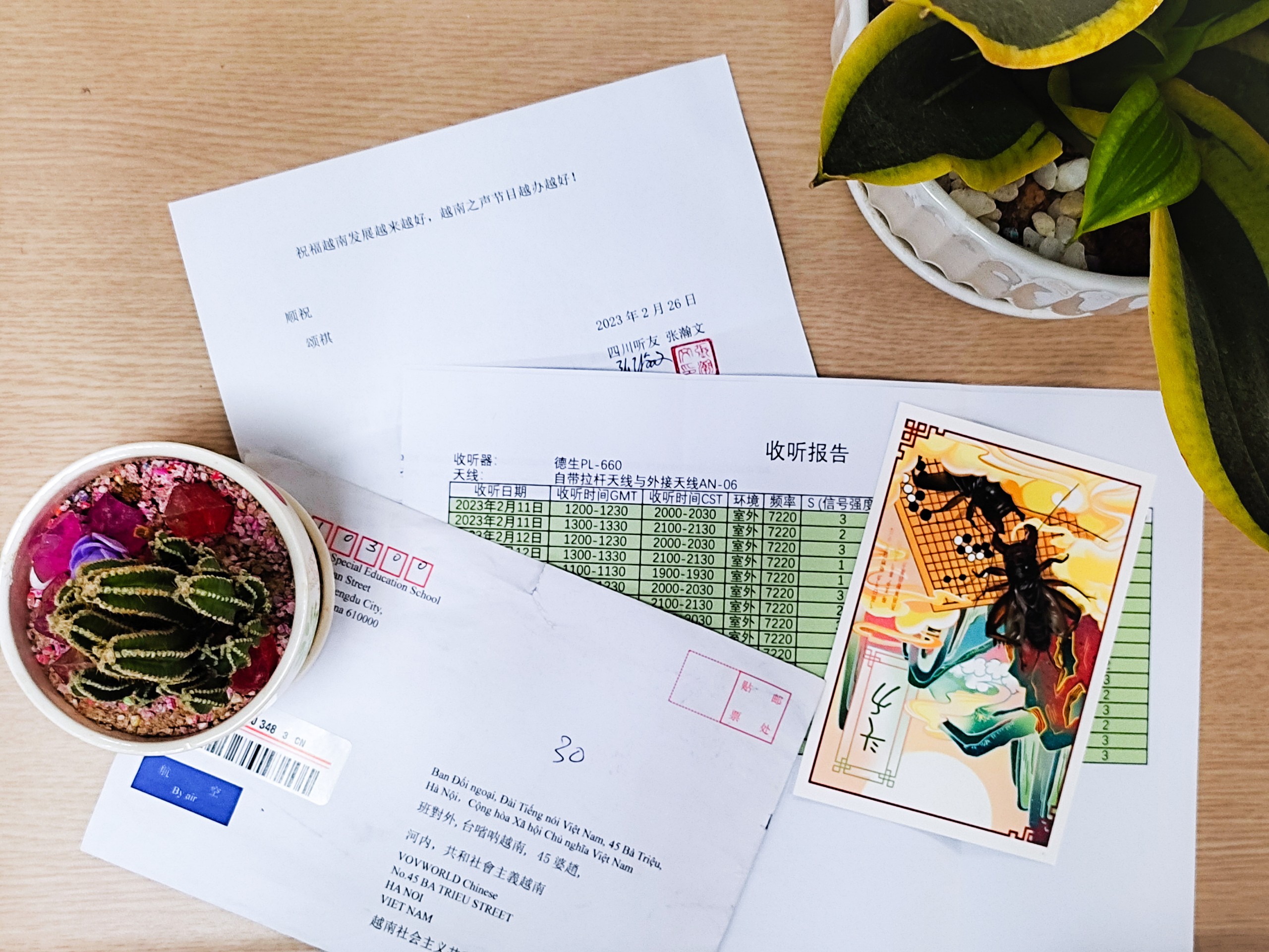 张瀚文在邮寄信件中讲道:“很高兴能够再次与你们通信。去年12月,中国遇到了一波新冠疫情的感染高峰,因此我那段时间很少出门,但仍然坚持通过贵台网页、广播了解越南。通过收听收看贵台的节目,那段时间因疫情引发的心理压力得以放松减轻。”