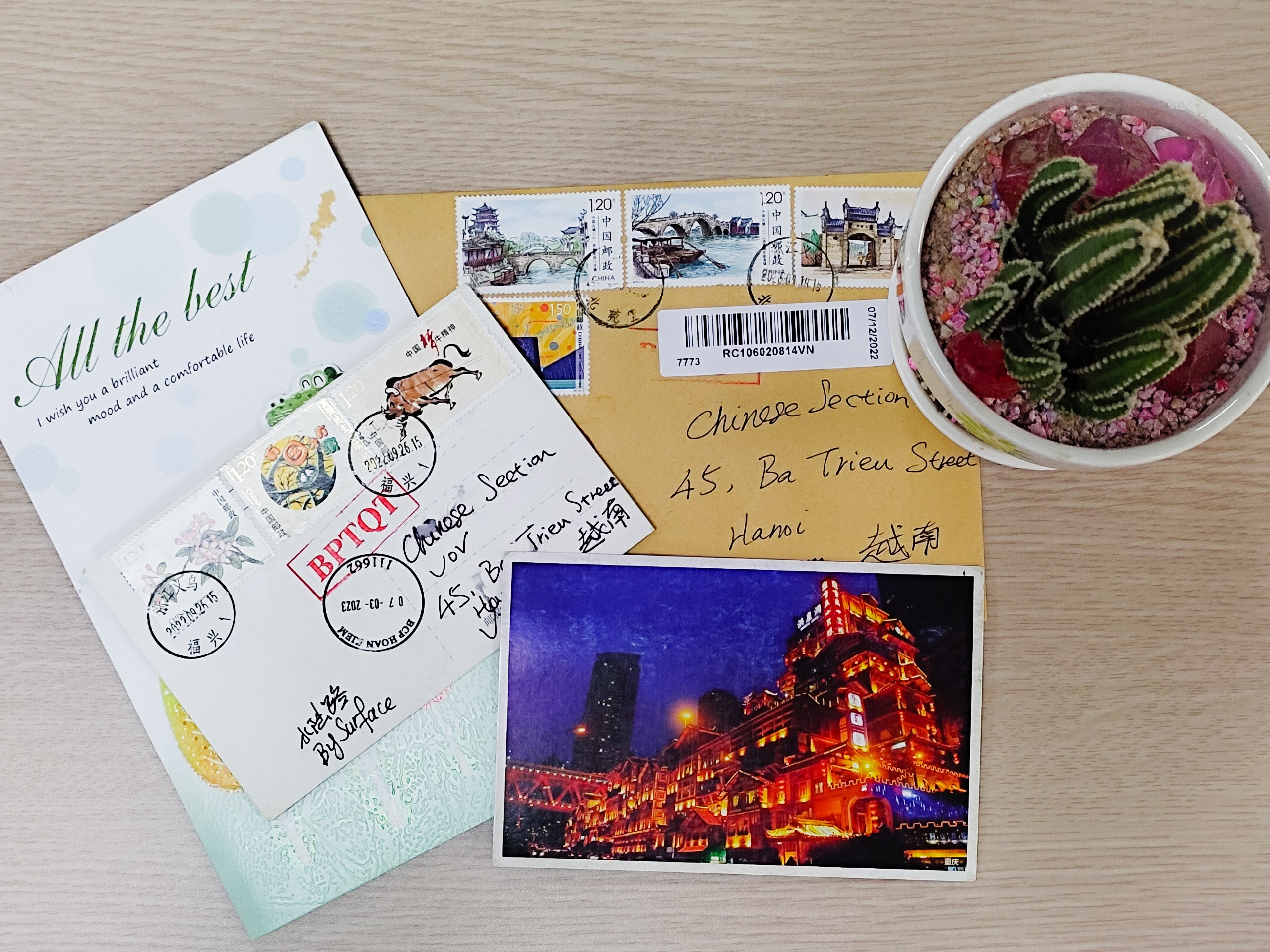 “新一年的春天,正是春暖花开之时。很高兴能够看到越中两国人民正在真正走出新冠疫情阴影,恢复正常的生活。上次通过电子邮件,我得知贵台向我寄送了明信片,十分感谢。但遗憾的是,我未能收到,或许是由于疫情的影响。希望新的一年,跨国书信联系能够不受阻碍。”