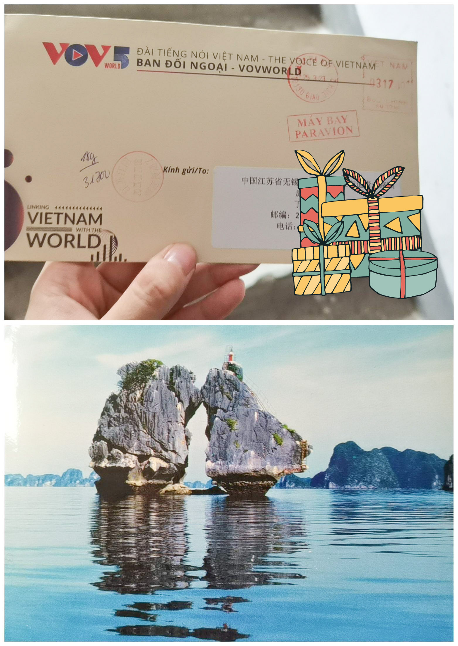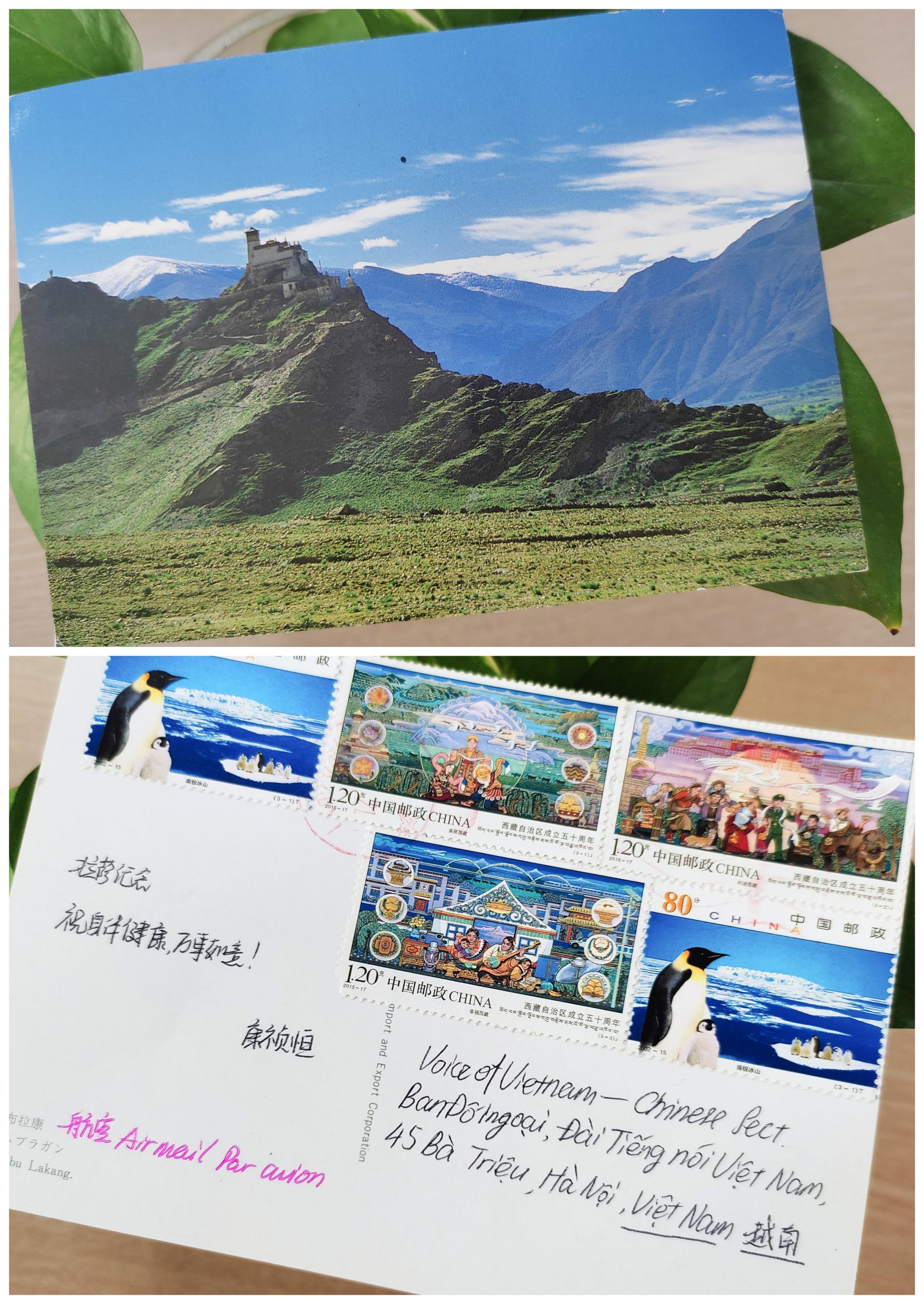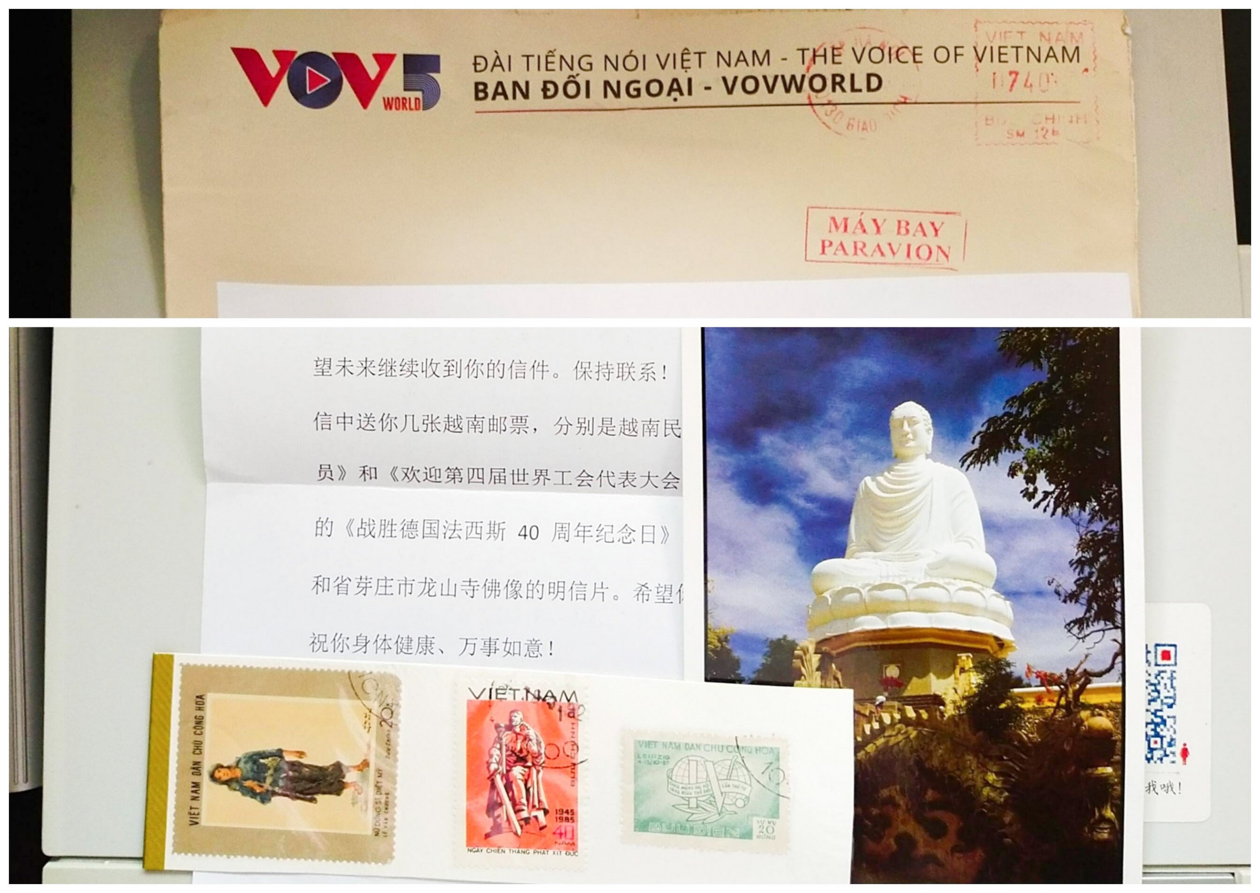 另外,广东省听众洪昱和江苏省听众丁路也来信说收到我们从河内寄去的信件了。洪昱8月8日在电子邮件里说:“我刚刚收到贵台寄来的信件了,除了对我前两个月去信提到的两个问题的回答,还有随信附上的老邮票和明信片很有年代感,值得保存!我的兴趣爱好除了广播电视、二次元动漫,也包括集邮,贵台送上的邮票也合我的兴趣!”