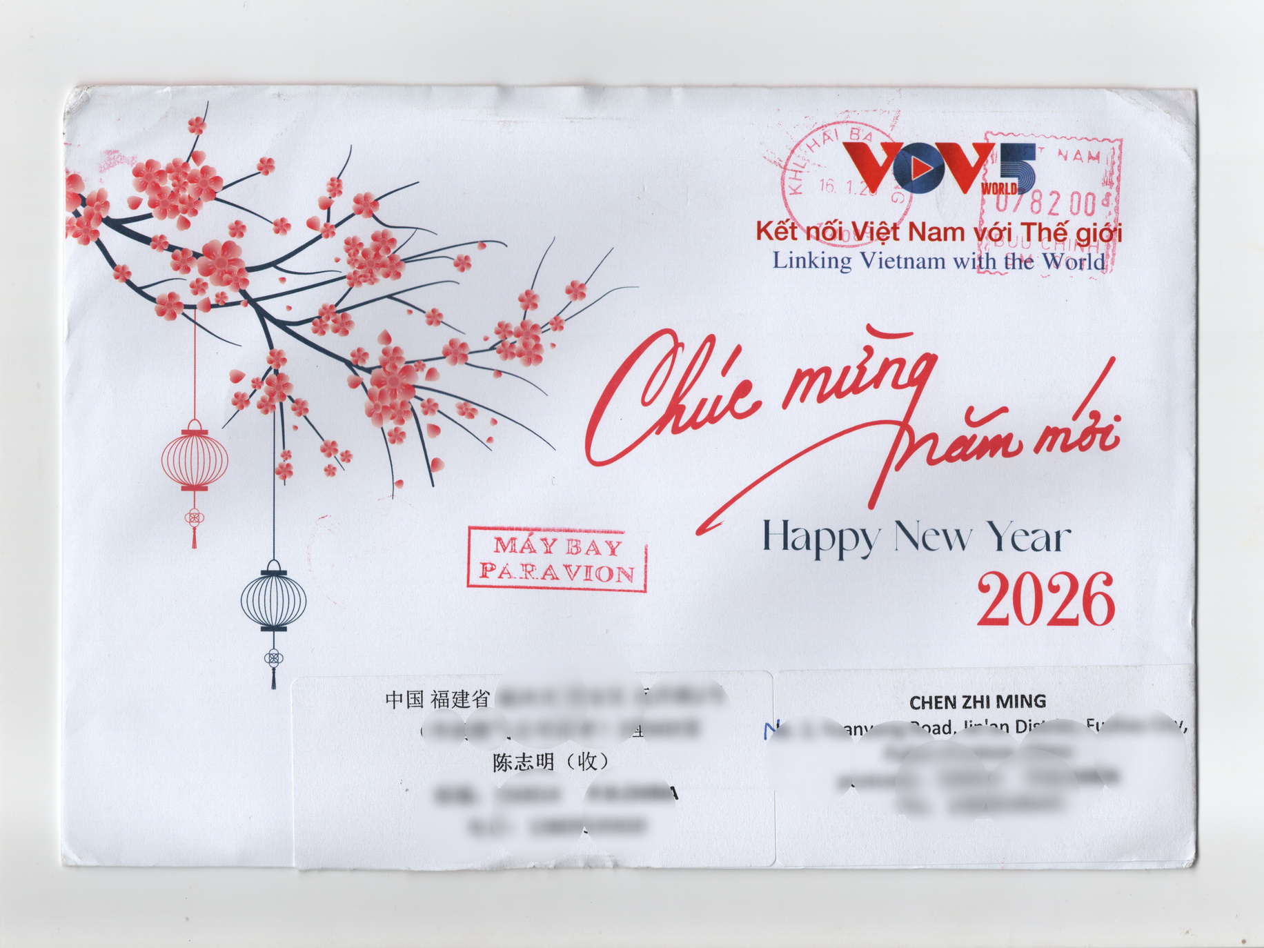 范红杰还详细介绍:“2月24日正月初八,是过完春节年后上班的第一天,我象往常一样到单位传达室书报箱领取近期的报刊杂志,结果却让我获得了一个意外的惊喜,那就是你们越南之声今年1月26日寄出的新年贺卡收到了。新年贺卡都非常有越南特色,正面是自然美景、地域风光照片;而背面则是用越英中日韩俄等13种语言表述‘新年快乐’的新春问候。在此谢谢越南之声带给我别样的新春问候和新年礼物,它让我的马年新春过得更为快乐,更有意义。祝越南之声对外部华语组全体编播人员新春佳节快乐,马年幸福吉祥!”