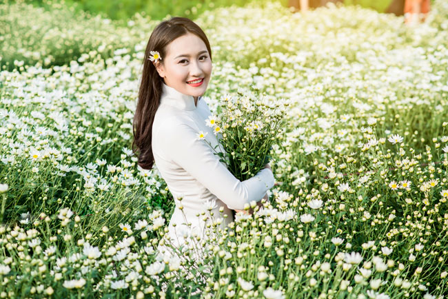 雏菊花期较短,三个星期左右,因此女孩子们要赶紧拍照留念。这些天,若来到花园,你会看到可爱的萌妹子在白嫩嫩的雏菊旁摆姿势留影。摄影师换着各种角度以抓住雏菊的美。若是闭上眼睛,你会闻到河内秋冬之交特有的味道。