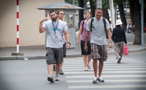 对造访越南的外国游客来说,极为重要的是要学会如何过马路。因为越南交通一向被称为混乱的洪流。所以外国游客不能走得太快,也不能停在路上不走。对他们来说这也是越南的“可爱”之处。