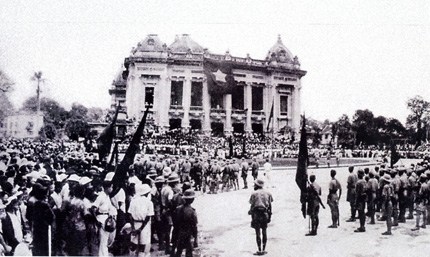 1945年8月17日,职工总会在河内大剧院广场举行了一场声势浩大的集会,呼吁支持越盟。