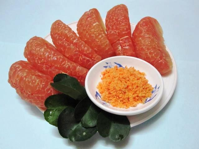 绿皮柚子如其名称,即使熟透了,外表还是油亮、翠绿的。这让不少首次见到的人都怀疑地问“还没熟呢,怎么能吃?”。其实,虽然外表绿,但果肉却是石榴般的红色,并有着越南南部水土清新甜美的味道。