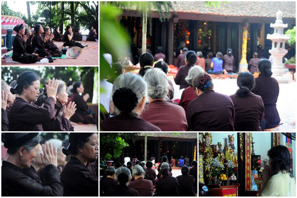 每到农历7月15即佛教称的盂兰节,越南全国各地大小寺庙人山人海。各地佛教徒和香客云集于此,烧香拜佛,祈求死去的亲人早日超生。在报孝仪式上,人们满怀激动地在胸前别上一朵玫瑰花,以表达对过世父母的怀念。