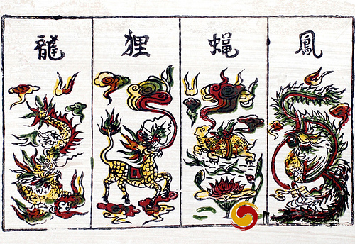 根据东方哲学,“四灵”包括:龙、麟、龟、凤,其中龙为四灵之首,被越南人加以神化,成为力量、权力、繁荣和永恒生命力的象征。龙的形象常出现在宫殿、亭台、陵寝、寺庙建筑和装饰物上。