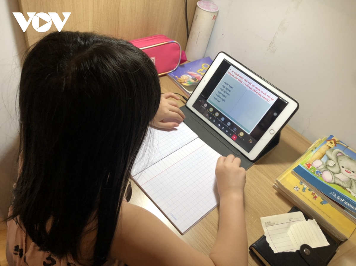 在疫情依然复杂难测的地方,学生们目前只能上网课。教育培训部提出的精神是“停课不停学”。河内市河东郡阮悠小学校长吴氏洪良说:“为了让学生们可以最快地适应网课,我校举行了与家长的线上交流会,就家长陪伴学生上网课达成共识。老师们也把班里同学分组,新学年开始前先与每组学生和家长接触,同家长一道教学生相关电脑操作。我们觉得,最重要的还是培养学生的学习兴趣,锻炼其学习习惯。至于最困难的问题,那就是网络基础设施,网络信号不佳。”
