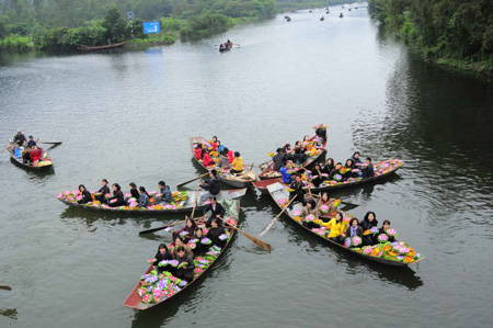 Mỗi năm có khoảng hàng chục vạn người đi trẩy hội chùa Hương |